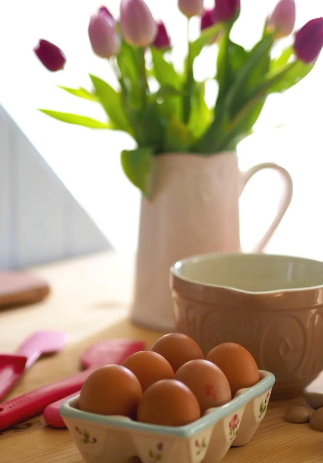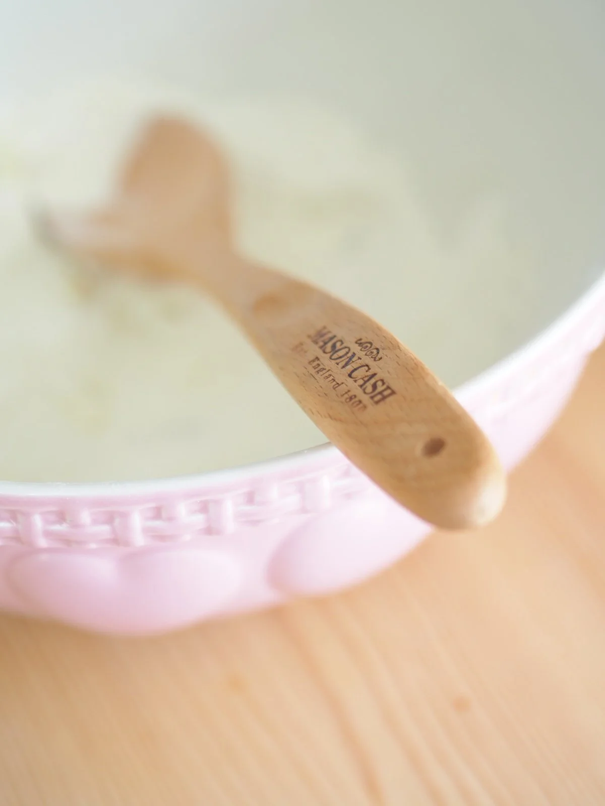 First up you’ll need to dig around in your baking cupboard for a nice mixing bowl, milk jug and a few utensils. I use my Kenwood Stand Mixer most days so it’s nice to get out my beautiful Mason Cash mixing bowl once in a while.